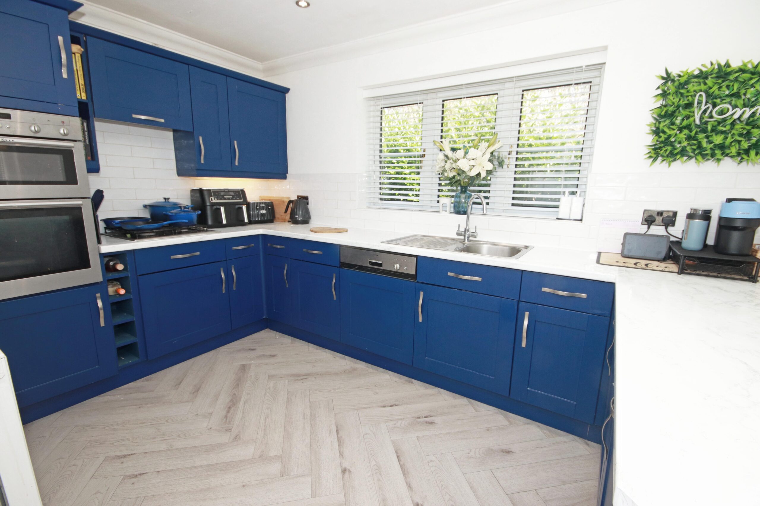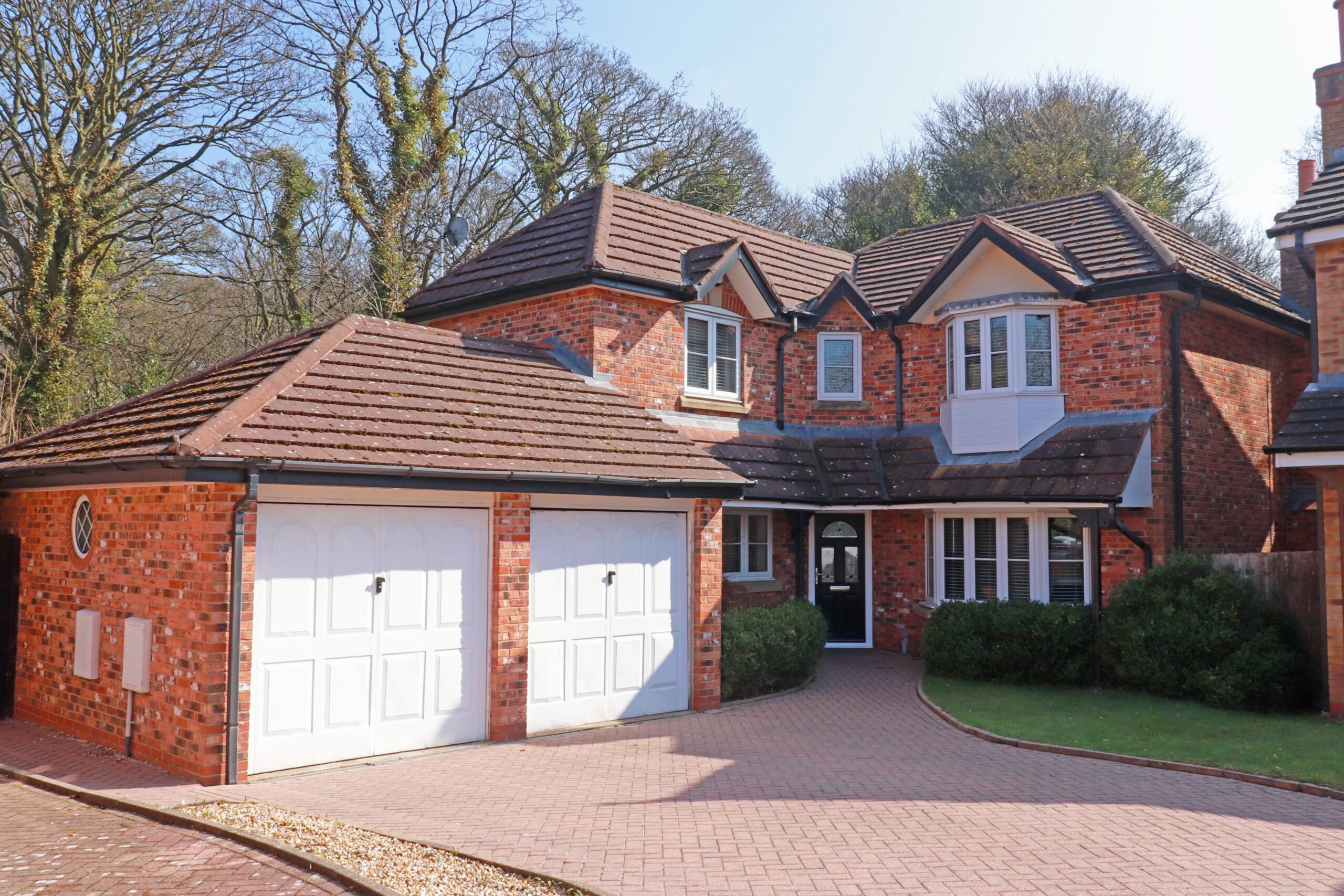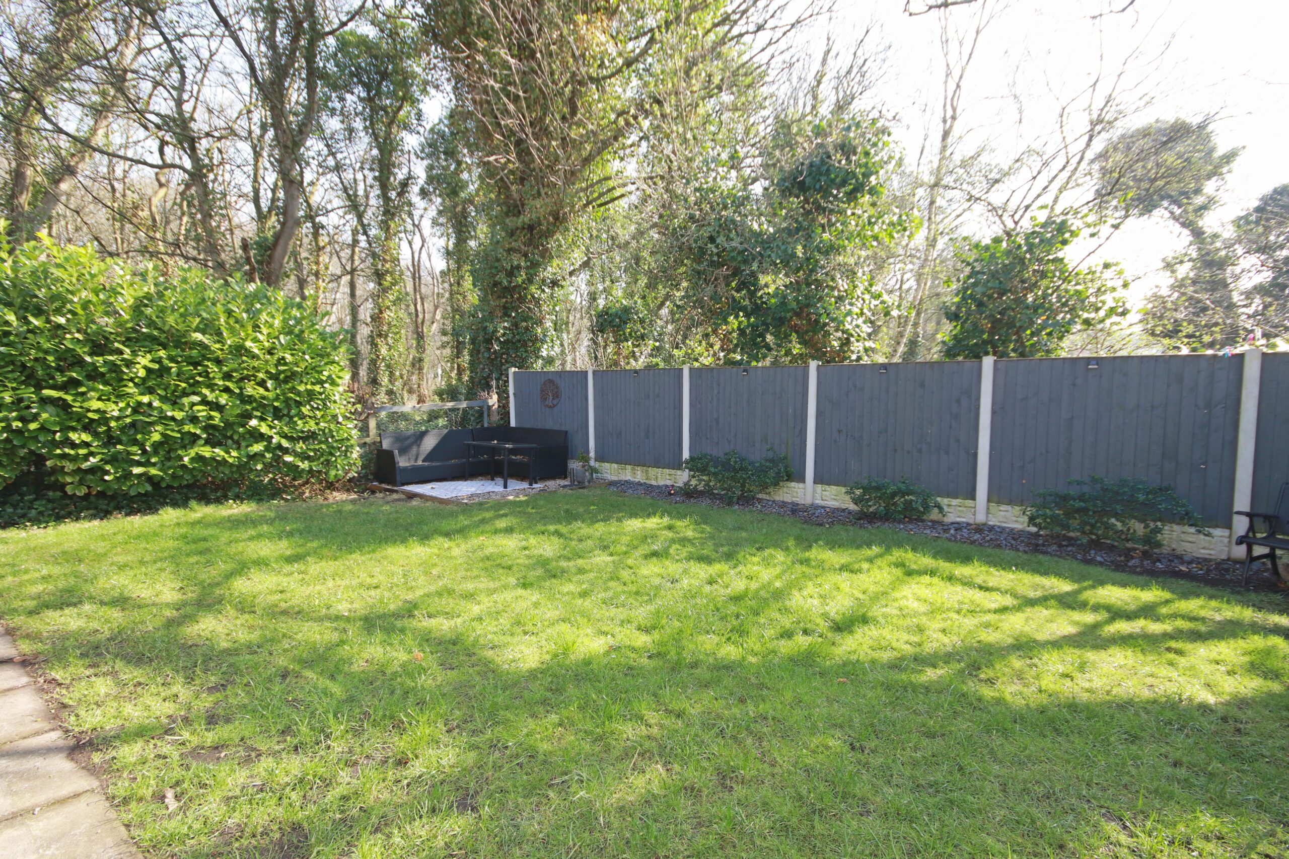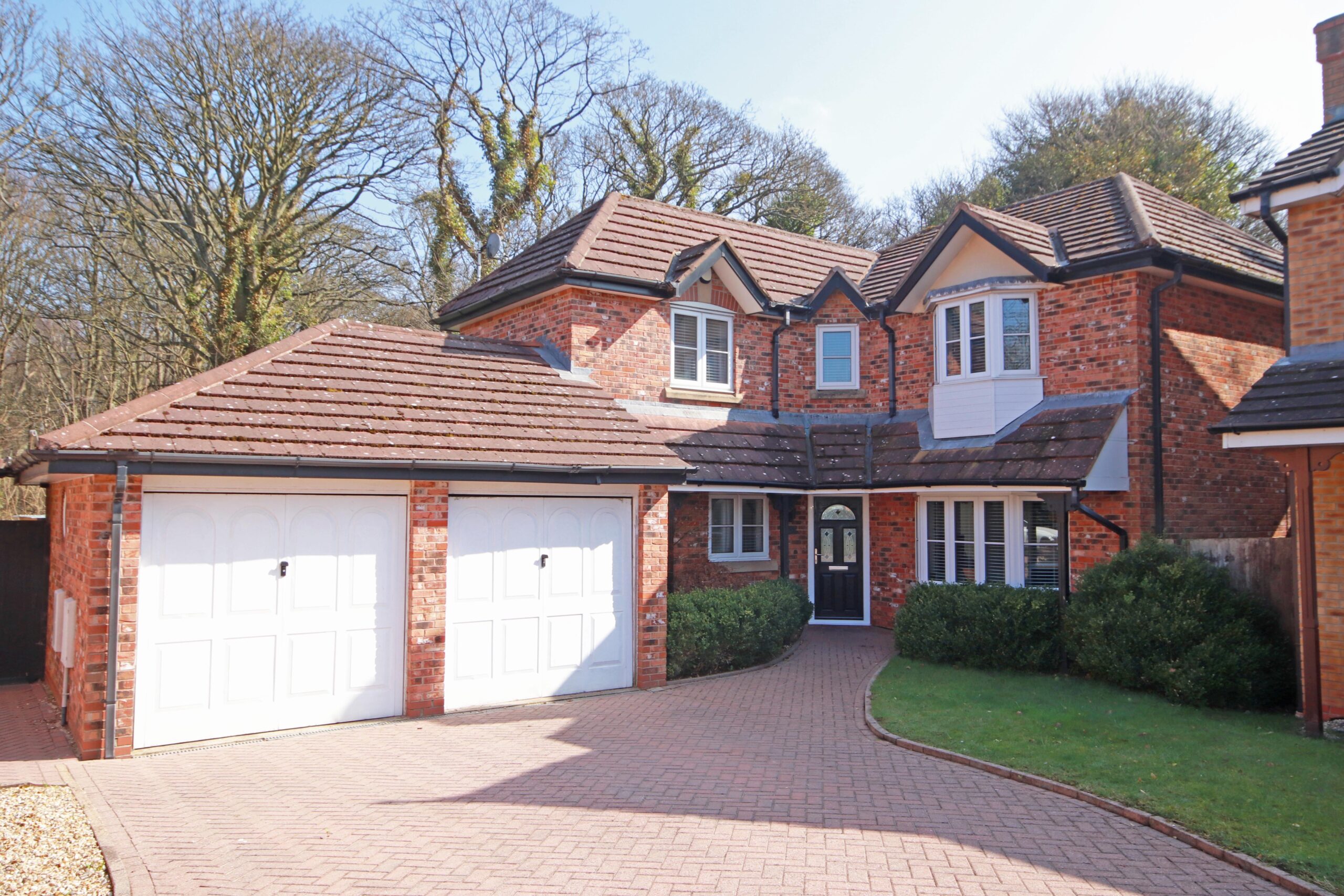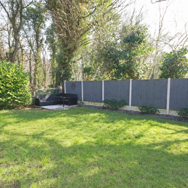 The property is set on a desirable corner plot, with a wraparound private rear garden that backs onto tranquil woodland, offering a peaceful retreat.