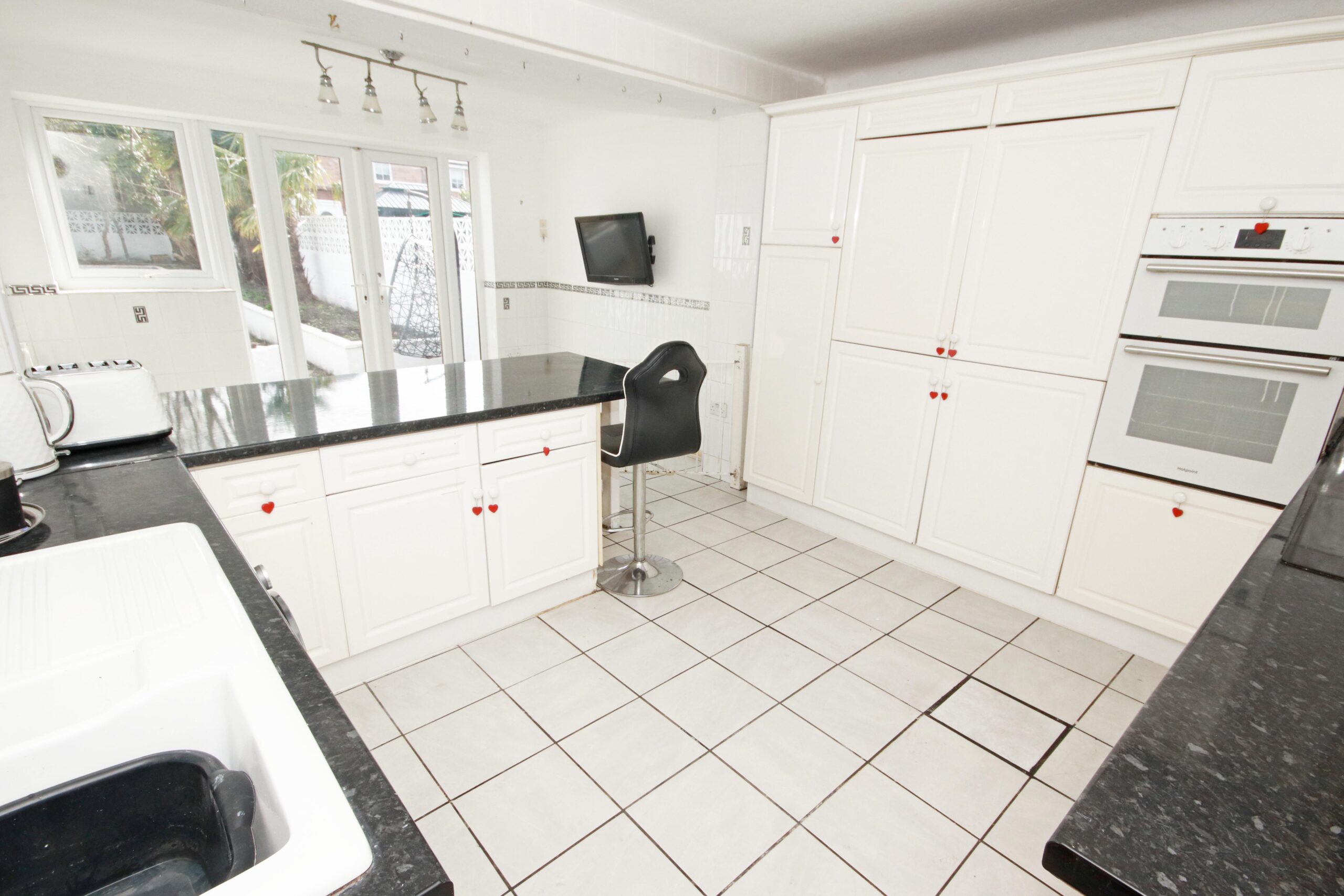 Upon entering the property via the side door from the spacious driveway, you are welcomed into a bright hallway that provides access to the airy lounge. The lounge features two double bay windows, allowing ample natural light to fill the room. Also accessible from the hallway is the extended, open-plan kitchen diner, complete with integrated appliances and a range of wall and base units. French doors provide seamless access to the rear garden, enhancing the indoor-outdoor living experience.